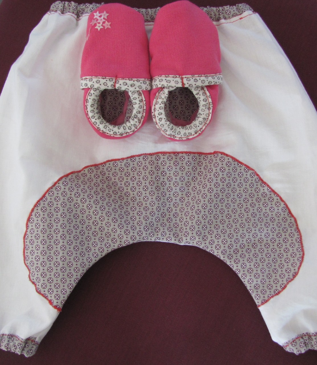 Une pluie d'étoiles cousues à la main sur le chausson gauche pour différencier les 2 pieds